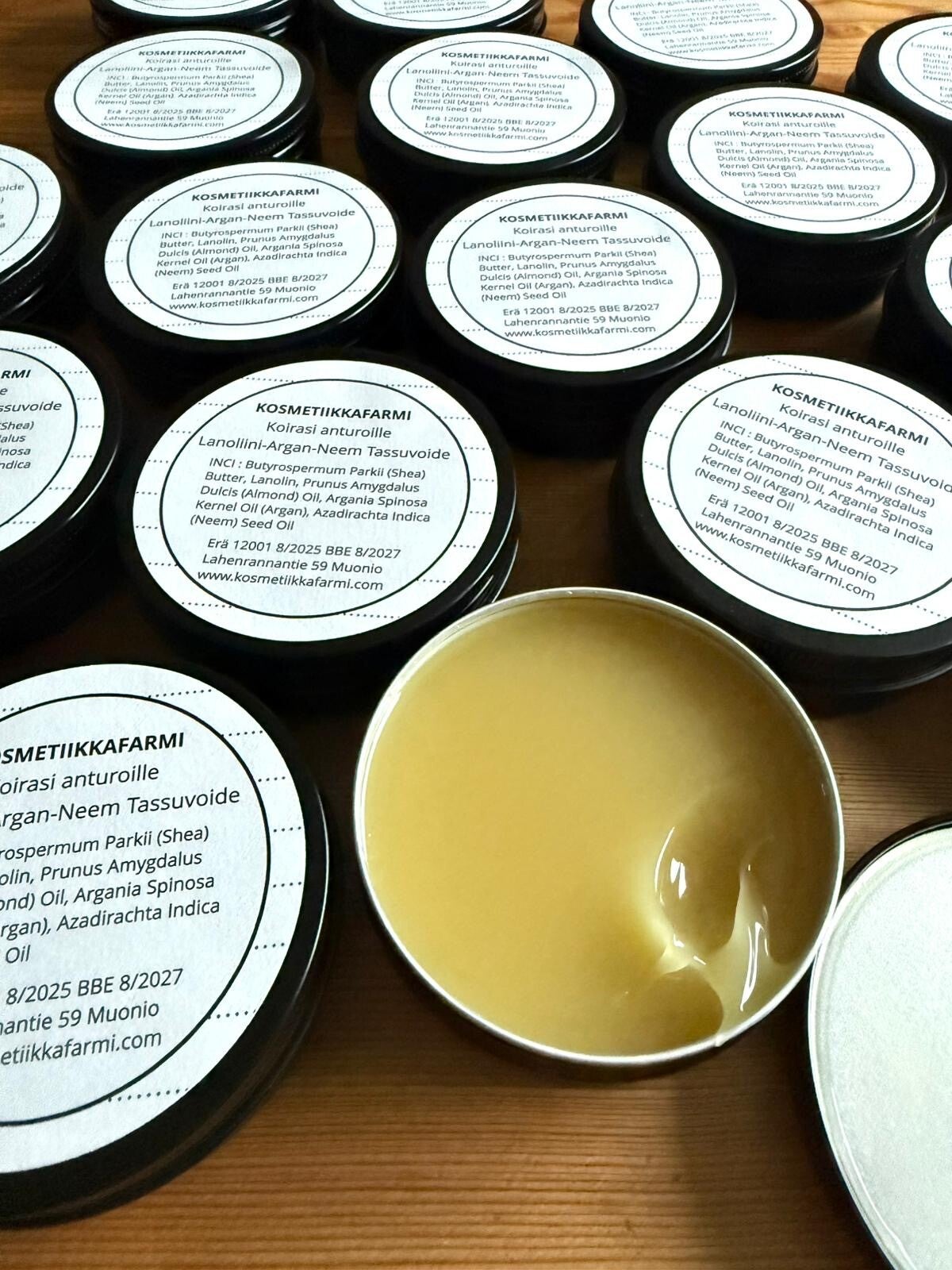 Sisältää lanoliinia ja sheea-rasvaa sekä argana-, manteli- ja neemöljyä