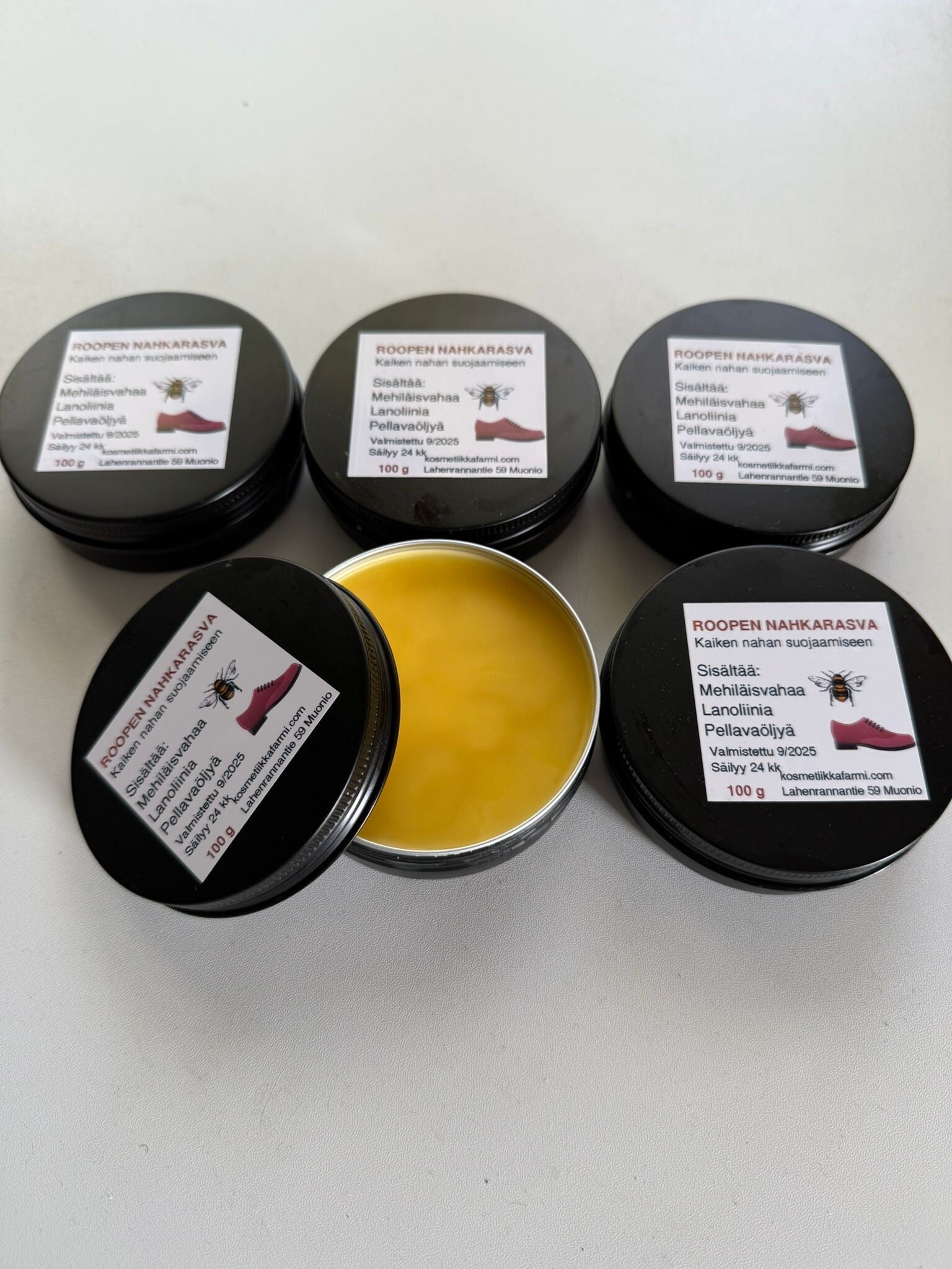 Sisältää mehiläisvahaa, lanoliinia ja pellavaöljyä.